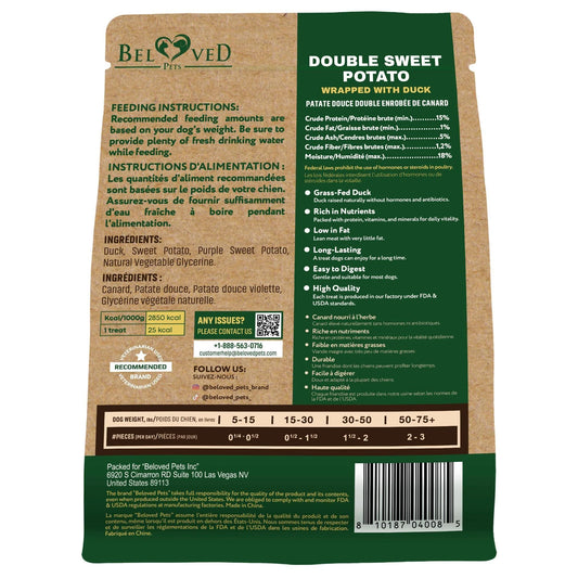 Sweet Potato Dog Treats & Healthy Duck Chews 10.6 Oz Puppy Snacks & Soft Bones for Large Medium Small Breeds Natural Dog Food & Grain Free Rawhide Free Training Jerky Wraps