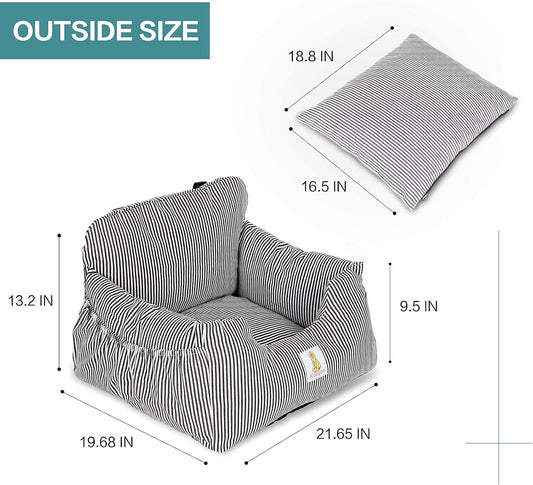 Small Dog Car Seat, Pet Travel Car Booster Seat with Safety Belt, Washable Double-Sided Cushion and Storage Pocket for Small Pet (Small, Light Grey)